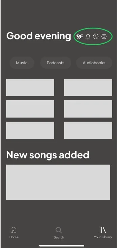 While creating mid-fidelity wireframes, I explored several homescreen iterations. Initially, I chose homescreen 3, but testing showed homescreen 4 was better for the average Spotify user. I quickly adapted as I had already prepared this alternative.